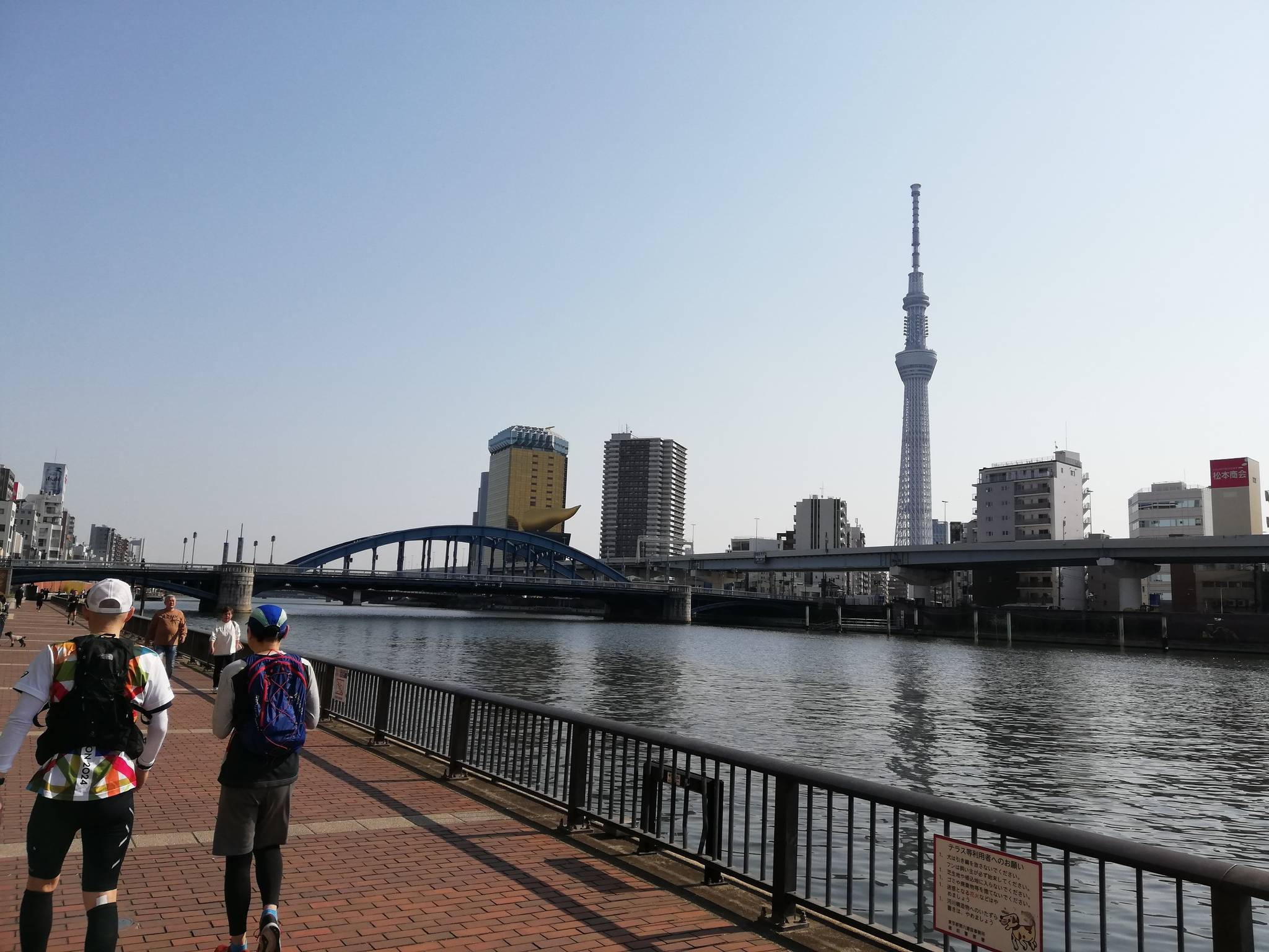 そうです、隅田川沿いにランニングコースがあるんです。