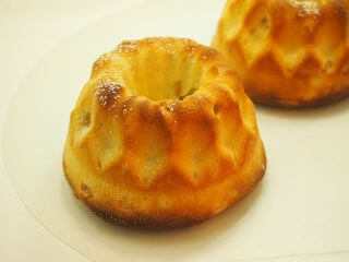 フランスのアルザス地方の伝統的な焼き菓子。オレンジとラムレーズンが入った、しっとりとしたバターケーキの様な食感です。 -